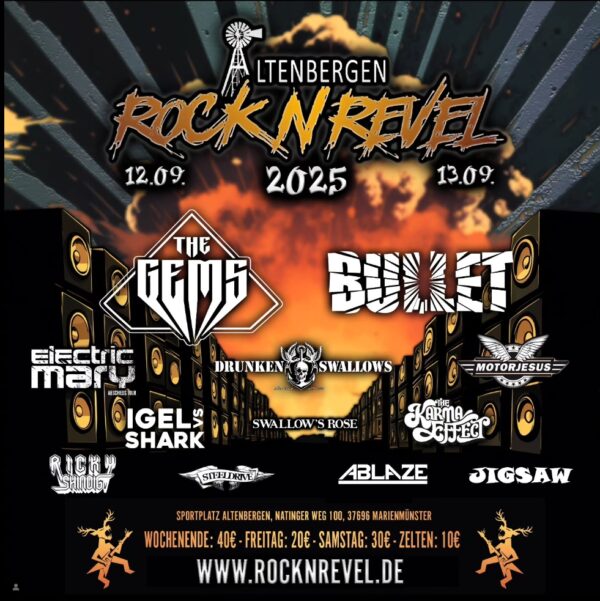 Rock ’n Revel – Festival 2025 PastGigsVon adminSeptember 13, 2025Kommentar hinterlassenSome photos of the evening